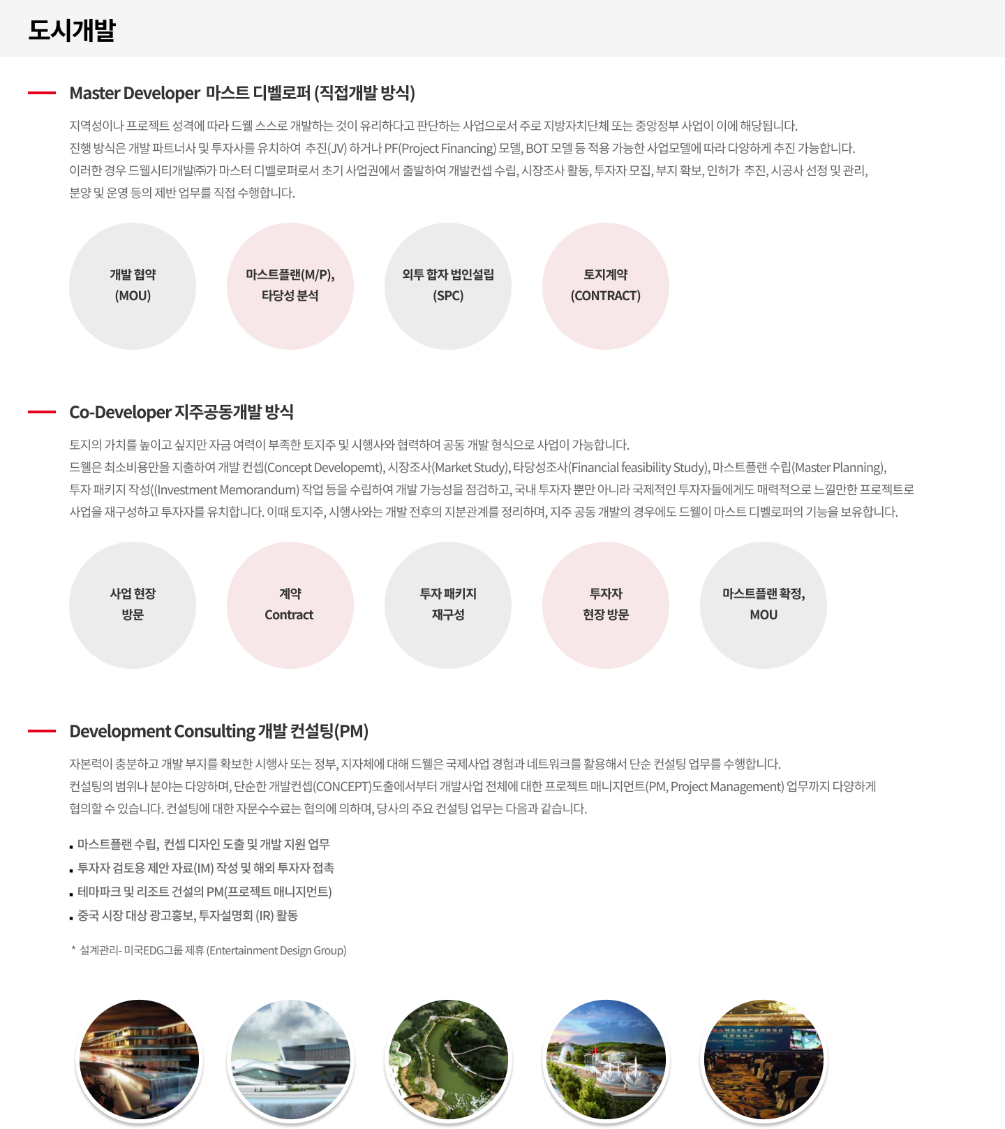 미래 친환경적인 삶을 지향하는 지속 가능한  글로벌 도시개발 사업을 추진하고 있습니다.